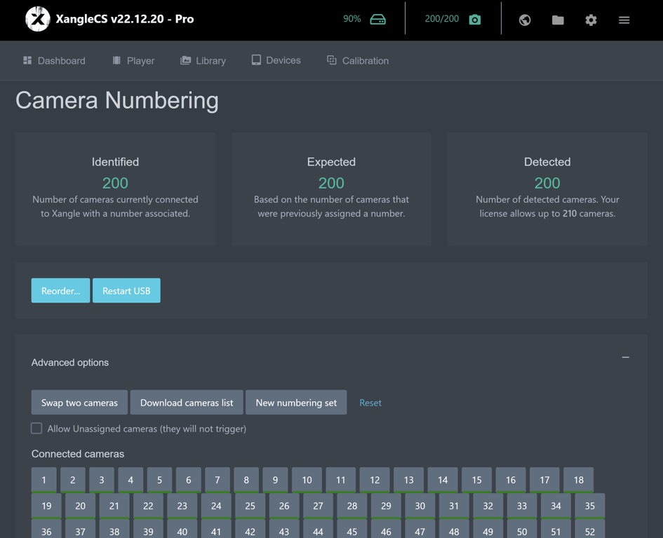 Numbering the cameras using Xangle is as simple as this: Turn on the cameras in the right order, click a button, and you’re done.