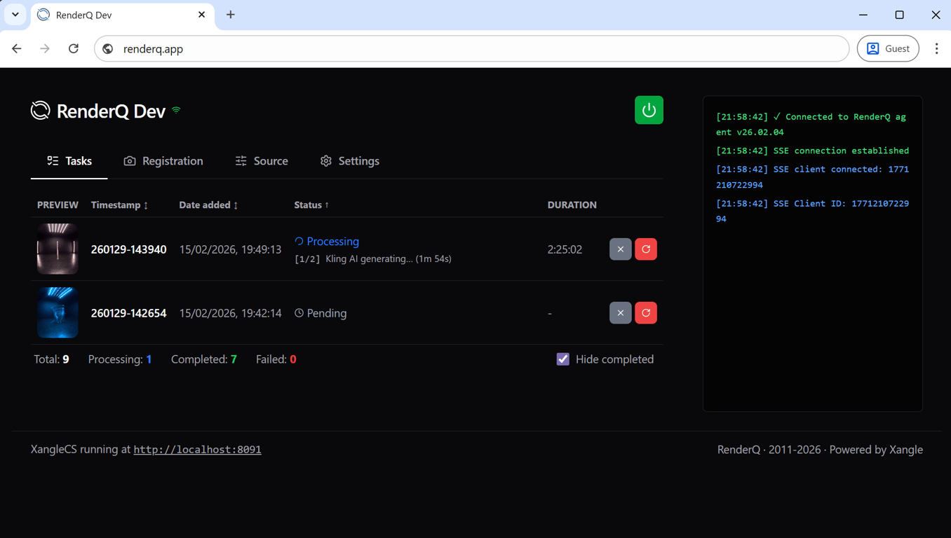 RenderQ is a production companion app for Xangle Camera Server (XangleCS), designed to offload longer-running processing jobs from your live capture environment.