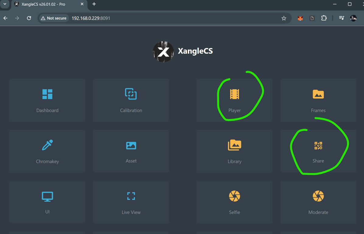 Ouvrez le module “Gallery” depuis une page web. C'est généralement http://192.168.0.100:8089/gallery (utilisez l'adresse IP locale de l'ordinateur où Xangle s'exécute). Sur un ordinateur Windows, appuyez sur la touche F11 pour passer en plein écran.